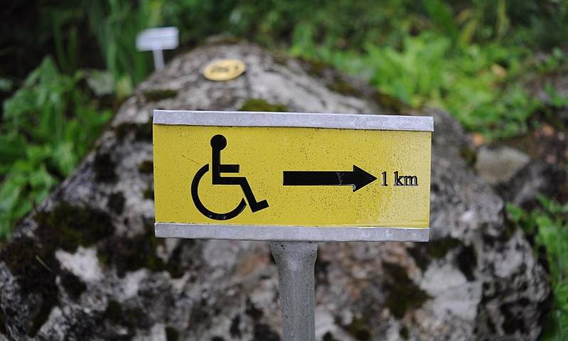 Nell’immagine: l’indicazione di un sentiero accessibile a persone con disabilità motorie. Foto di Jensbest, CC BY-SA 4.0, via Wikimedia Commons