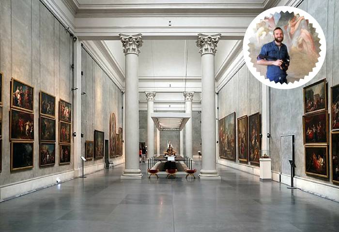 Nell’immagine: Francesco Bini (Sailko) e il suo scatto arrivato al quinto posto in Italia per Wiki Loves Monuments 2017, realizzato alla Galleria Nazionale di Parma. Foto di Sailko (Opera propria), CC BY-SA 4.0, via Wikimedia Commons. Grafica di Francesca Ussani (WMIT).