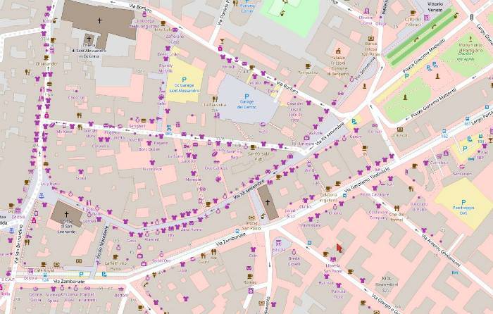 Nell’immagine: gli esercizi commerciali di Bergamo Centro su OpenStreetMap