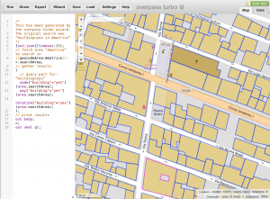 Overpass Turbo – http://overpass-turbo.eu/ – uno strumento per interrogare in tempo reale i dati da OpenStreetMap.